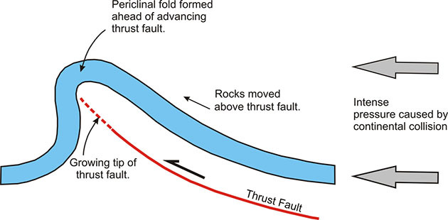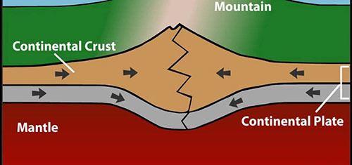 It happens every day. Two cars collide and all the metal gets bent into different shapes. Some bends into curves, other bits get sharp folds depending on the pressures of the crash. Well, the same thing happens with the Earth's rocks. You get two continents just gliding along without looking where they going and suddenly they collide - imagine what would have to happen to the rock right on the edge where the impact has happened.