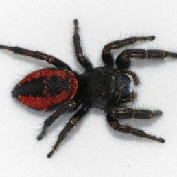 The spider species Phidippus johnsoni, commonly known as Johnson Jumping Spider, belongs to the genus Phidippus, in the family Salticidae. The red-backed jumping spider is one of the largest and most commonly encountered jumping spiders of western North America. This species constructs conspicuous tubular silken nests under rocks and wood on the ground and sometimes grape vines. They remain inside these at night and during bad weather.