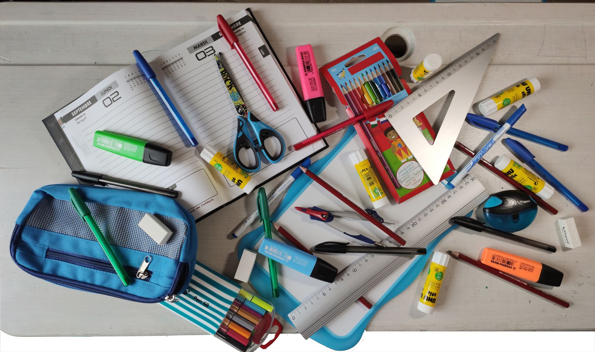 (Les fournitures «gadget» sont fortement déconseillées à l'école.)