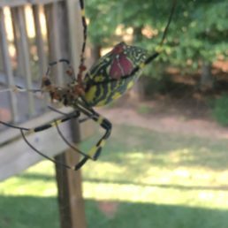 The spider species Nephila clavata, commonly known as Joro spider, belongs to the genus Nephila, in the family Araneidae. The spider can be found throughout Japan except Hokkaidō, in Korea, Taiwan, China, and more recently, Northeast Georgia in North America. Due to the large size as well as the bright, unique colors of the female Nephila, the spider is well-favored in Japan.