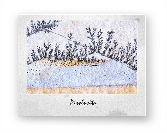 La pirolusita es un mineral negro, pulverulento, que generalmente aparece asociado a otros minerales de manganeso, con frecuencia no cristalinos; esta asociación recibe el nombre de "wad", transcripción inglesa de un término hindú. Alguna vez se presenta en forma de cristales prismáticos negros: en este caso se denomina "polianita", término derivado del griego y que se refiere al color oscuro del mineral. La pirolusita era conocida en el siglo XVI como piedra de manganeso, pero sólo en 1827 toma su nombre actual, que deriva del griego pyr ("fuego") y luein ("lavar"), en alusión al hecho de que se utilizaba para eliminar el tinte pardo o verde producido por la presencia de hierro en los vidrios; por esta razón también se le ha denominado jabón de los vidrieros.
