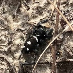 The spider species Phidippus regius, commonly known as Regal Jumping Spider, belongs to the genus Phidippus, in the family Salticidae. The regal jumping spider belongs to a group of jumping spiders easily identified both by their relatively large size and their iridescent chelicerae. Among most members of Phidippus, these chelicerae are generally green, but in the case of P. regius they are often a blue-violet.