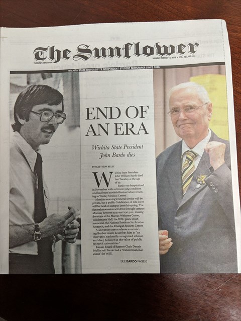 Dr. John William Bardo, 13th president of Wichita State University (WSU), died March 12, 2019. He was 70 years old. In his nearly seven years leading WSU, Dr. Bardo strategically and physically transformed the university and set us on an exciting course of innovation and creativity.
