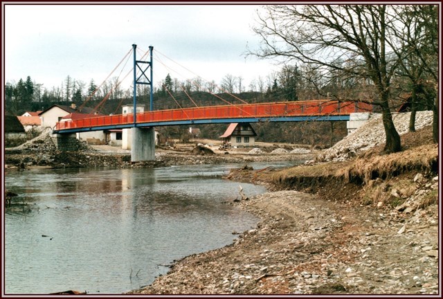 Do roku 2002 spojovala obec Doudleby s chatovou osadou Rechle tato lávka.