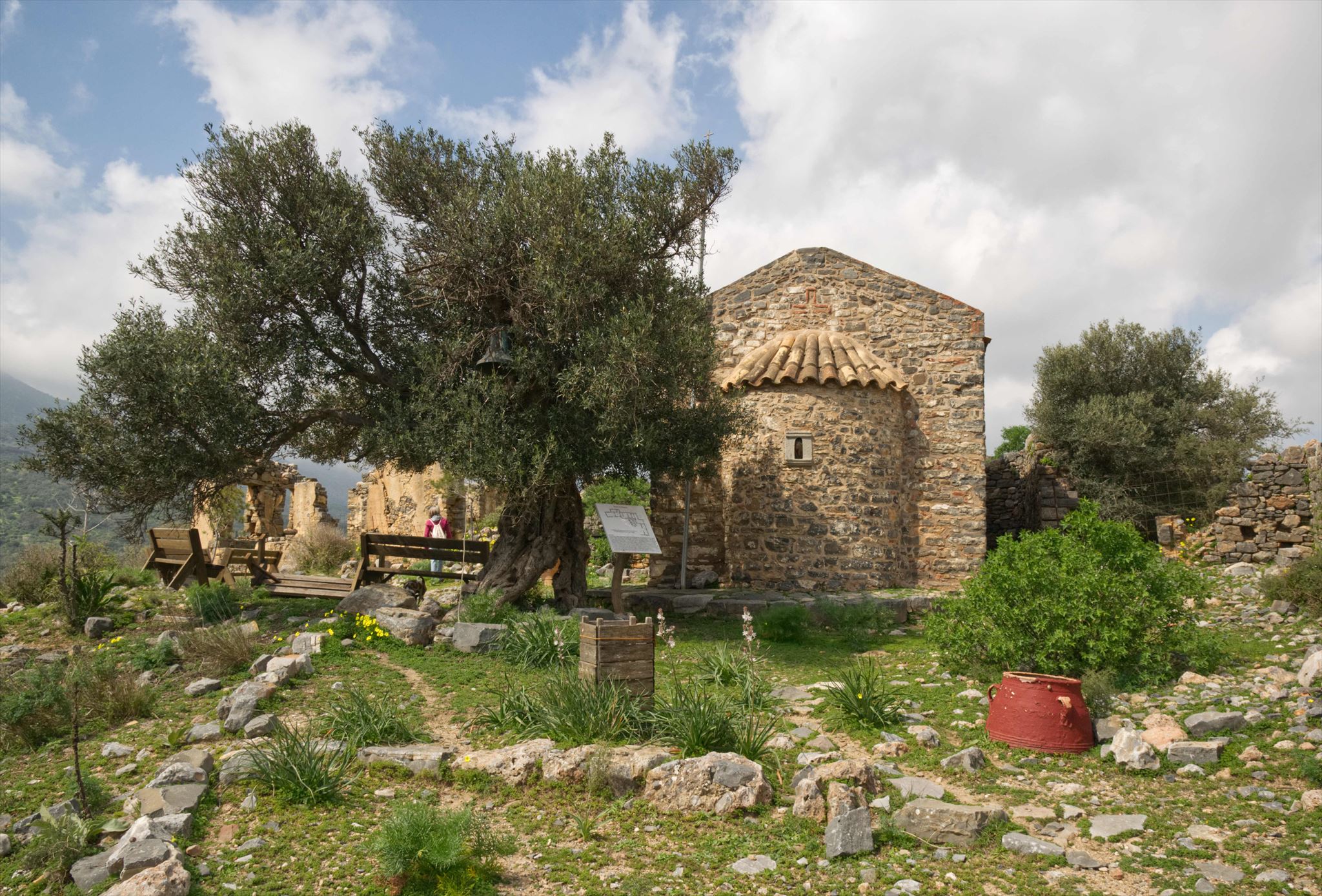 On a hill near Neapoli is the monastery Onoufrios. The church of Saint Onuphrius is well preserved so far, the remaining buildings have fallen into decay. As can be seen on the photo, there are also benches, so a good picnic spot where you can enjoy the view over Neapoli.
