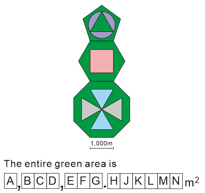 Suggest using the Windows Calculator to calculate the area of each green block, keep all the numbers on the calculator when calculating. When you have the measure of each green block, please keep the six digits after the decimal point.建議用window小算盤計算每個綠色區塊時,保留所有小數點以下的數字。當算出區塊面積後,小數點後請留六位數。