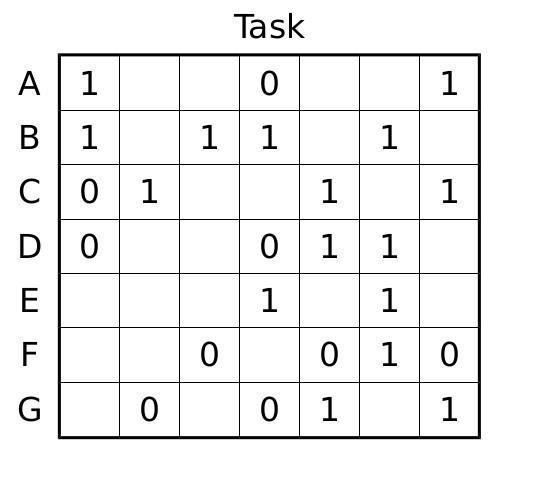 - Geben Sie in jedem Kästchen der Tabelle 0 oder 1 ein.