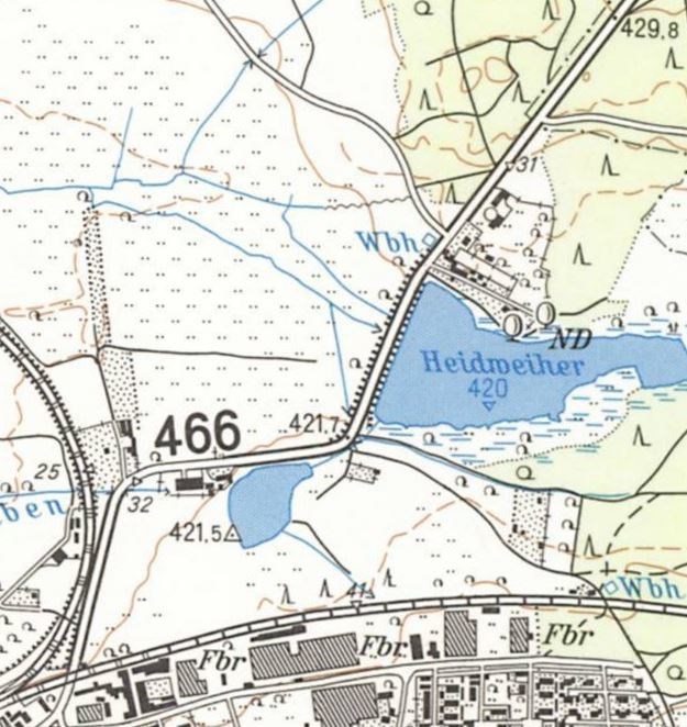 Durch den Bau des Altmühlüberleiters wurde in diesem Bereich der Straßenverlauf verlegt, so dass der Hauptverkehr heute nicht mehr direkt am Heidweiher entlang fährt.