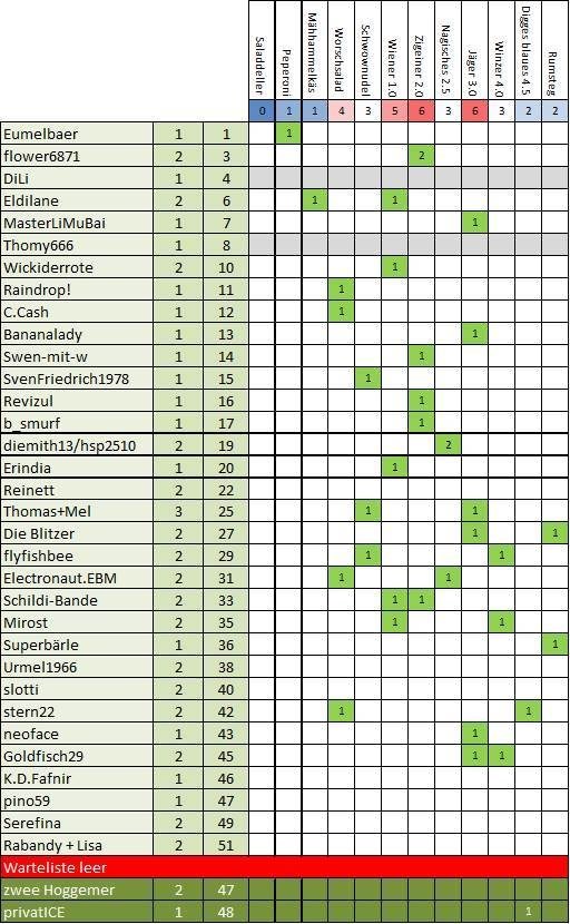 Eine Warteliste, die wir vermutlich eh wieder auflösen ist eingerichtet. Gegen 20 Uhr wird es meißt ein wenig leerer. Wer dann kurzfristig mit oder ohne Anmeldung kommen möchte. Kein Problem. Wir freuen uns über jeden.