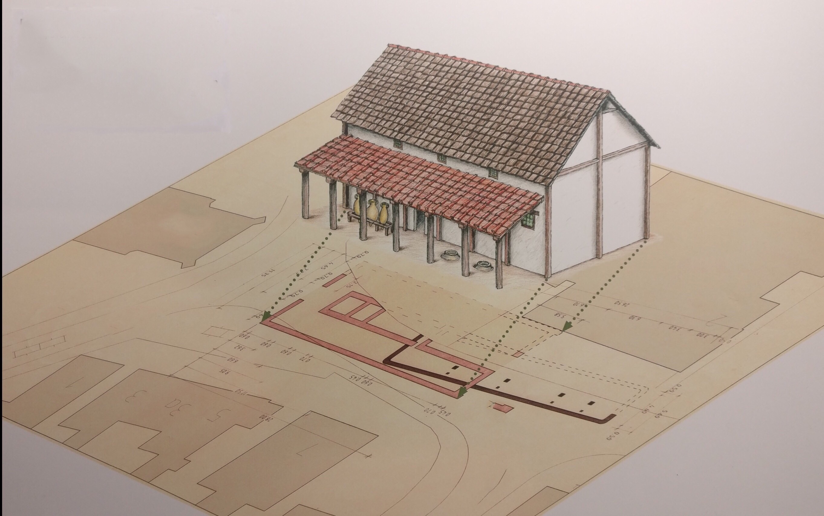Voorstelling van de villa waarvan het stenen fundament is gevonden. |
