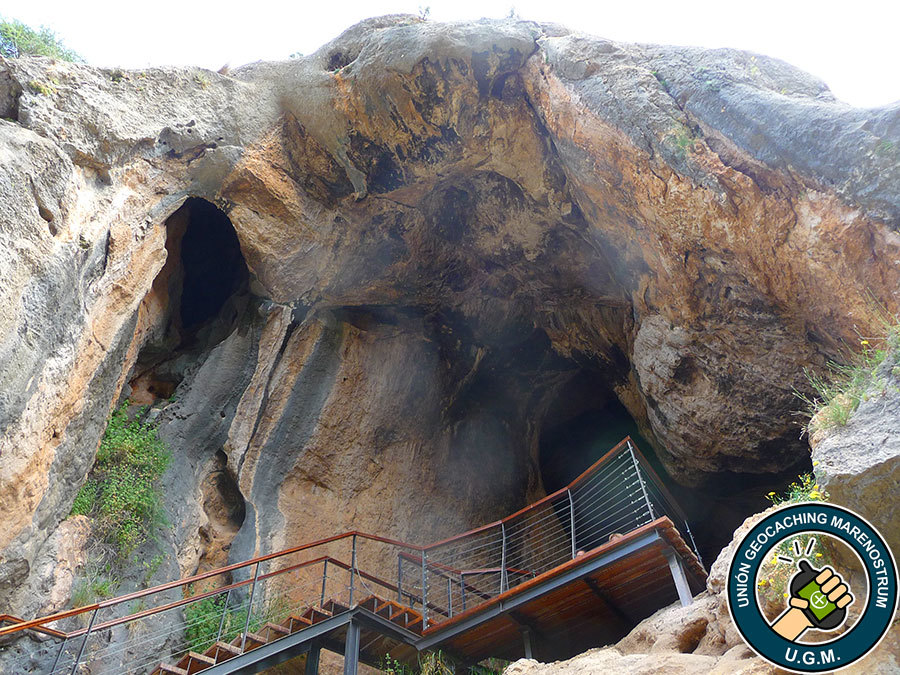 Al grupo de espeleología de la Diputación Provincial se debe el hallazgo de este abrigo en 1972, poco antes de que se desprendiera una estrecha cornisa natural por la que sus moradores accedían a la cueva, lo cual obliga ahora a descender por una angosta abertura situada a tres metros del precipicio, cubierta por una reja de protección. Una ajustada escalera de caracol cubre el tramo inicial, el más estrecho, oscuro y agobiante, mas enseguida se vislumbra la gran boca asomada al vacío (unos 8 metros de diámetro), y esa luz, ese resplandor que ilumina los negruzcos paredones, las filtraciones de agua, la estalactita incipiente, anima a seguir bajando por los tramos de escalera volada que en 1990 habilitó la dirección general de Patrimonio Histórico.