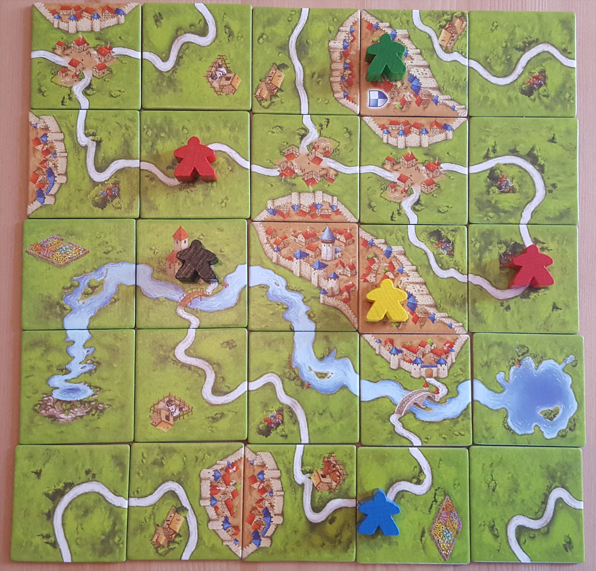 I Carcassonne bygger spelarna med hjälp av spelbrickor upp små landskap av öppna fält, vägar, kloster och städer som de alla försöker kontrollera fram till dess att den sista spelbrickan är dragen och placerad på den ständigt växande spelplanen. Varje spelare tilldelas successivt poäng för de vägar, kloster samt städer där man har en av sina små spelfigurer placerade när ett sådant helt område tillsluts och står som komplett, med en sista poängräkning av alla öppna fält samt ej kompletta övriga verk när den sista spelbrickan är placerad och spelet således avslutas.