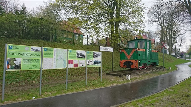 Stojąc przed odrestaurowaną lokomotywą kolejki wąkotorowej zobaczysz słupek z numerem 25, w odległości około 1m na szynach kolejowych zauważysz ciąg liter i liczb: [K] XX V S YY .