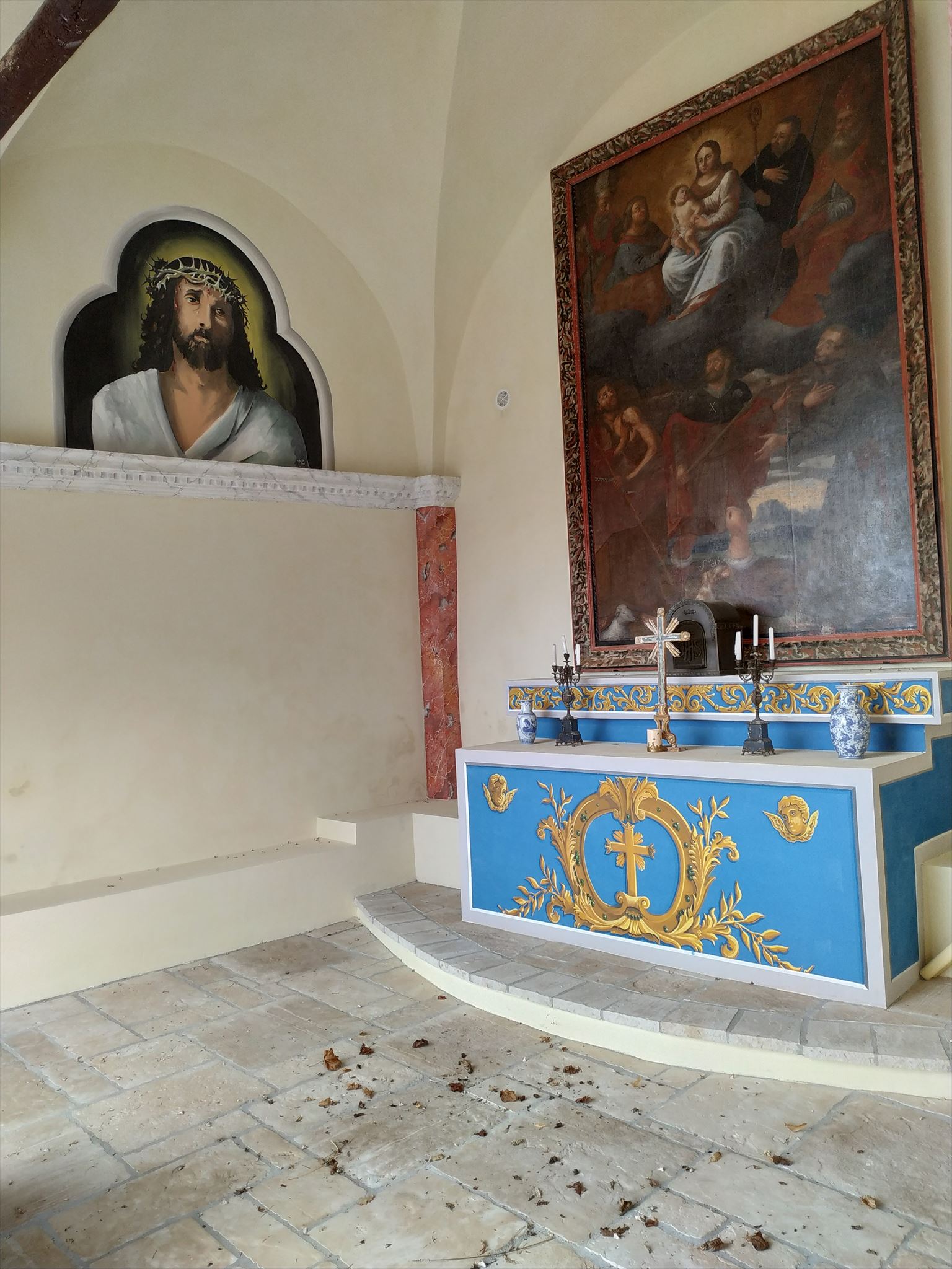 Au fond, à gauche, une représentation du Christ qui semble récente.