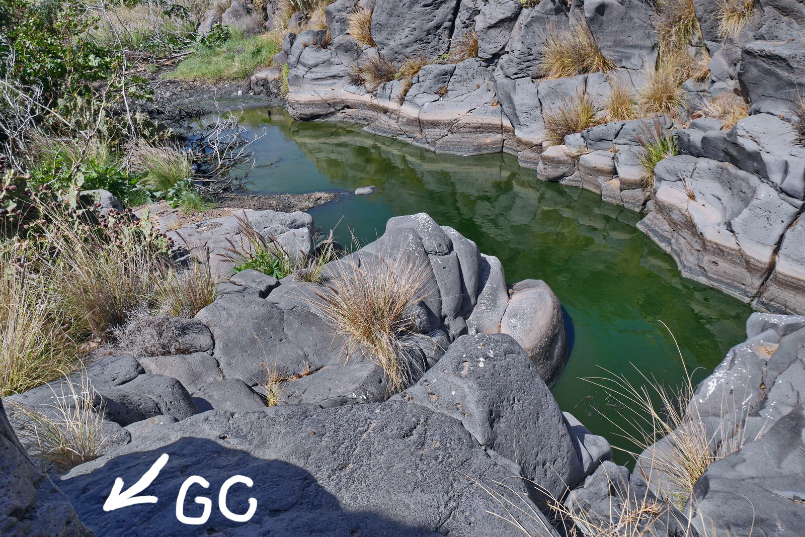 En los alrededores del Hoyo 3, descubrí este charco en el barranco, que a pesar de lo poco que ha llovido este año, aún mantenía algo de agua, me imagino que en momentos lluviosos el nivel de agua es considerablemente superior.