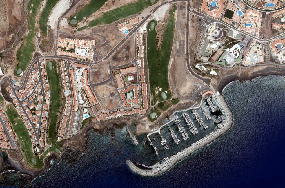 Viniendo por tierra, a 10 minutos del aeropuerto Tenerife Sur, en la urbanización Amarilla Golf, nos encontramos el puerto deportivo Marina San Miguel se divisa desde el mar entre las montañas Roja y Amarilla, con el Teide en lo más alto, y junto a dos espectaculares campos de golf: Amarilla Golf y Golf del Sur.