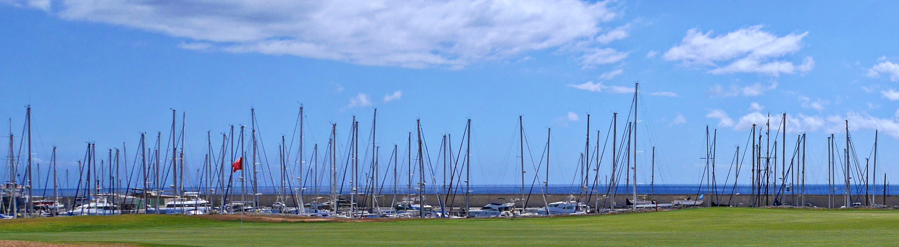 Divisamos desde el mar el puerto deportivo Amarilla Marina entre las montañas Roja y Amarilla y nos sorprende, sobre todo, descubrir nada más entrar por la bocana del puerto el “hoyo 12” de Amarilla Golf. El campo parece estar completamente integrado en las instalaciones del Puerto Deportivo y, a su vez, coronado con las majestuosas vistas de la cordillera del Teide. Su privilegiada ubicación y su clima le permiten disfrutar de la navegación y de su barco durante todo el año, gracias a que sus infraestructuras le convierten en un puerto ideal de preparación, avituallamiento y descanso para las largas travesías Atlánticas.