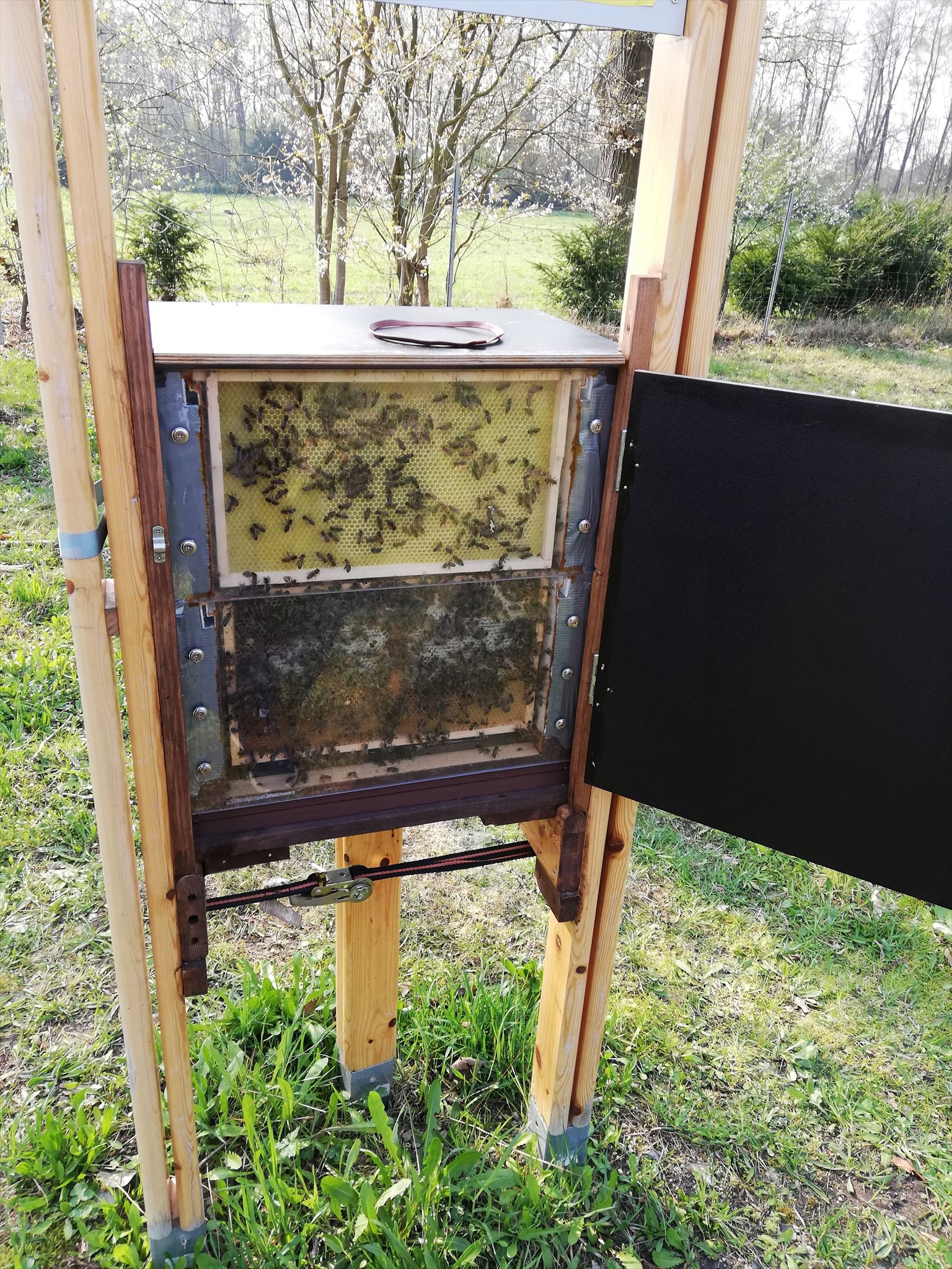 Neben der Erholung, kann man auch Bienen bei der Arbeit zuschauen und neuerdings, außerhalb des Geländes, einen Cache finden.