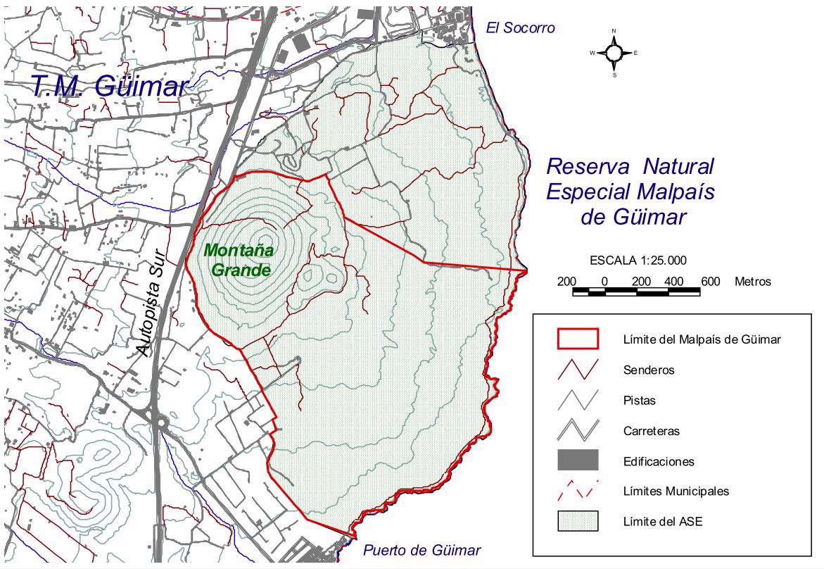 La Reserva Natural Especial del Malpaís de Güímar se extiende sobre un territorio deshabitado y agreste que encierra una de las muestras más representativas del paisaje volcánico reciente de la Isla de Tenerife. En él, junto a unas formas geológicas de notable diversidad y singular belleza, coexisten unas no menos sorprendentes manifestaciones de vida vegetal y animal, que han conseguido colonizar las estériles coladas en pocos miles de años.