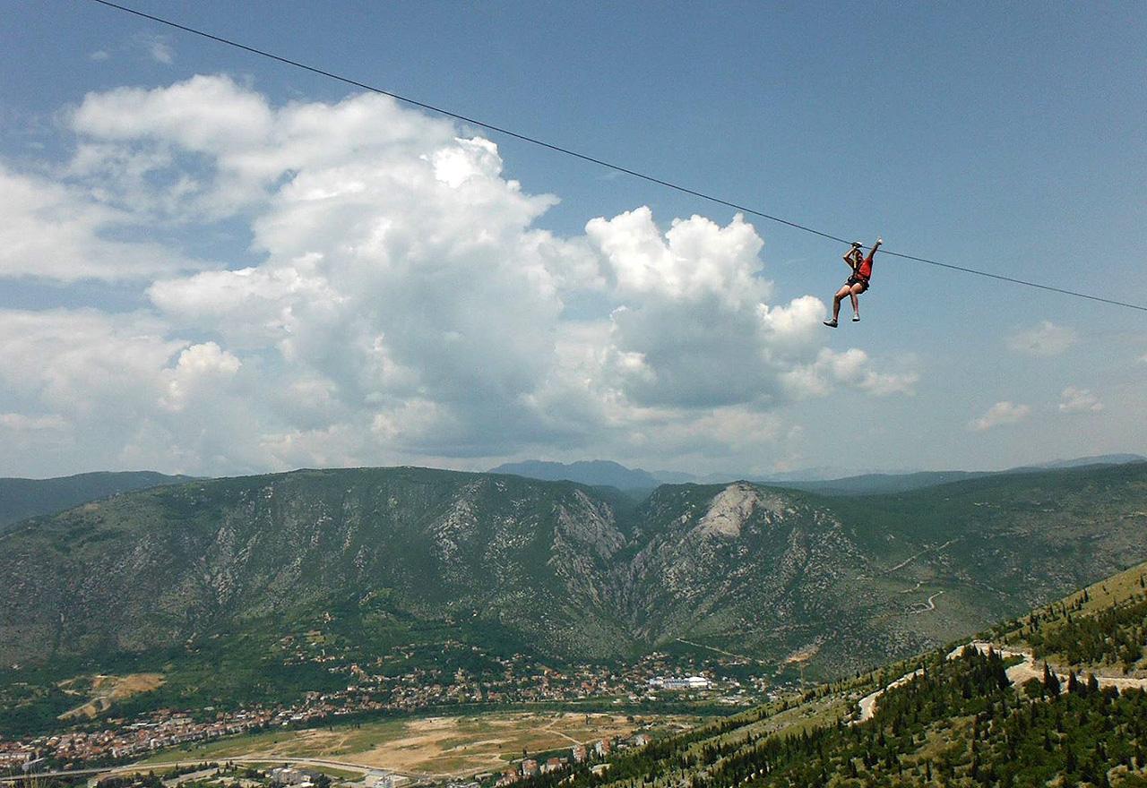 Fortica hill overlooks the city of Mostar and it is positioned to East/North-East above the city. Fortica is a home of many different adventurous and recreational activities from hiking, climbing, mountain biking, to the longest zipline in the whole country (570m long). During the Austro-Hungarian era, on the cliff called Stolac which rises in the middle of the hill, military barracks were built and throughout the history of the city, the hill held an important and strategic role in its defense and protection. The road that goes over takes you to one of the biggest mountains in the region, mountain Velež. Fortica is one of the places where locals go for recreational walks, hikes, runs and just relaxing time. It is a must if you are spending some time in Mostar. It is perfect for taking beautiful panoramic pictures of the city. Tip: Go and watch sunset there.