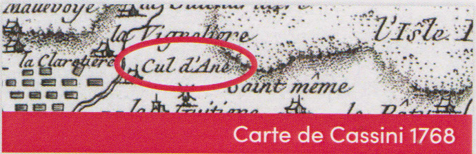 La localisation du " cul d'âne " dans le marais fait probablement référence à l'ancien français " ane " qui désignait un " canard " et qui n'a plus été comprise.