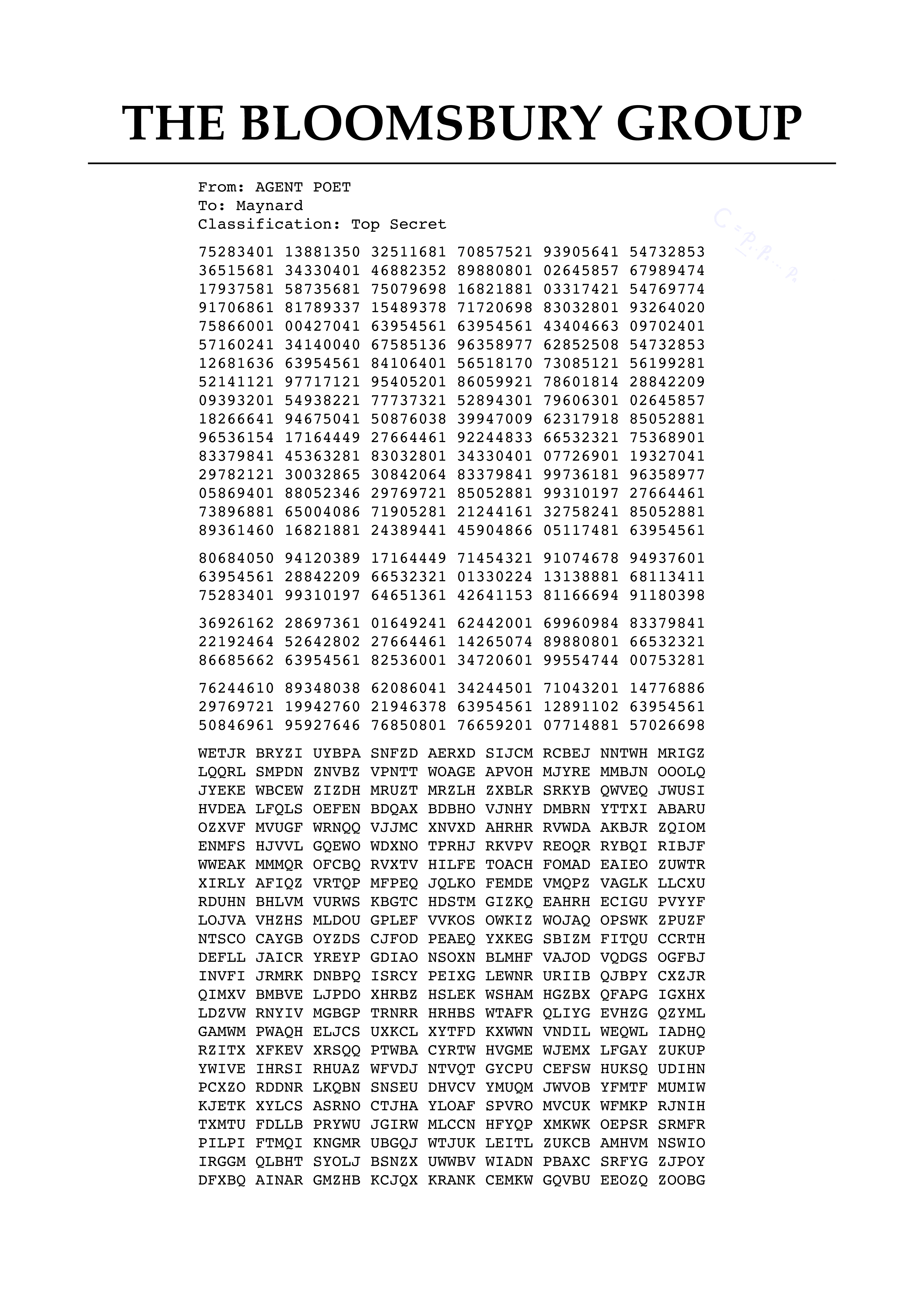 Although I couldn’t break the codes, I did transcribe the messages: [Message 1], [Message 2].