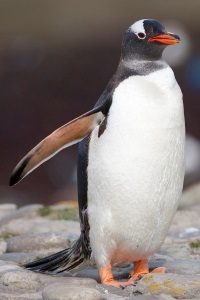 The Gentoo Penguin is closely related to the Adélie Penguin and the Chinstrap Penguin. The earliest scientific description was made in 1781 by Johann Reinhold Forster in the Falkland Islands. Gentoos live mainly on krill and fish.