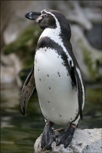 The Humboldt Penguin is a South American penguin that breeds in coastal Chile and Peru. Its nearest relatives are the African Penguin, the Magellanic Penguin and the Galápagos Penguin. The penguin is named after the cold water current it swims in, which is itself named after Alexander von Humboldt, an explorer. The species is listed as Vulnerable.