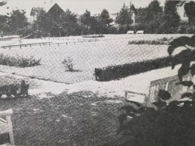 Tomta har aldri vært regulert til villastrøk. Den ble kjøpt av kommunen fra familien Ustvedt på Nygård i 1915, for 10 000 kroner. Deretter ble den opparbeidet til lekeplass for de minste i det sørøstre hjørnet, mens resten var sirlig tilsådd med benker, lave gjerder, rettvinklede hekker og blomsterbed omgitt av en krans av lindetrær (se bildet fra rundt 1930, fra parkens nordøstre hjørne). Den var tilpassa småbarn og pensjonister, som Knut Olborg skriver i Nedre Nygård krønike (2012; Sogn kultur- og historielag), men ikke ungguttene i området som helst ville sparke fotball på de pent opparbeidede plenene. Både han og min svigerfar (begge bor rett over veien for parken) forteller om en konstant krig mellom guttungene og kommunens gartnere og vedlikeholdsarbeidere, som i hvert fall i ett tilfelle skulle ha resultert i at en gartner kløyvde den dyre lærballen i to med ljåen sin. Litt eldre ungdom kunne imidlertid «på voksent maner innta en av de tre plassene nord i det meget påkostede parkområdet. Her var det krakker hvor man kunne utvikle vennskap og kjærlige bånd.» (Olborg, 2012).
