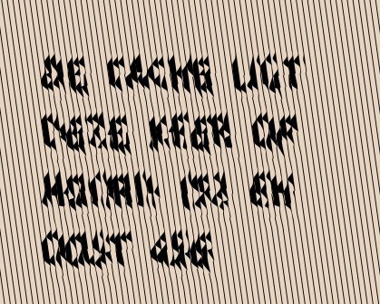 PS De serie Vexctraatjes gaat maar door. Dit tot groot leedwezen van velen die het puzzelen verafschuwen, maar tot groot plezier voor de vele trouwe puzzel liefhebbers van deze serie. Nog steeds het zelfde soort puzzels, misschien iets moeilijker, D3/3,5/4, maar met altijd een hint of kwinkslag naar de oplossing in de cache-beschrijving, de foto’s of de related web-page; kortom: puzzels die je kunt oplossen met een “ahaa, bedoelt ie dat”-moment. En als je toch vast loopt geldt wederom: je mag altijd melen. Miv nummer 59 zullen we ook steeds een foto hint gaan toevoegen als de eerste founds er uit zijn. Voor wat betreft de eindlocatie: weer zelfde manier van verstoppen; niet al te moeilijk om te vinden, want wij vinden namelijk dat als je de puzzel opgelost hebt, dat je dan ook de cache in het veld moet kunnen vinden. In deze serie vanaf nummer 43 is er echter geen bonus meer.