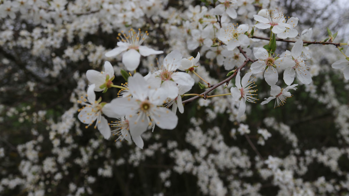 Im Herbst können eure Herrchen und Frauchen hier die Äpfel und Pflaumen am Wegesrand genießen, deren Erblühen im Frühjahr zu bewundern ist. Als nicht-veganer frage ich mich, wieso eigentlich keine Knochen an Bäumen wachsen?