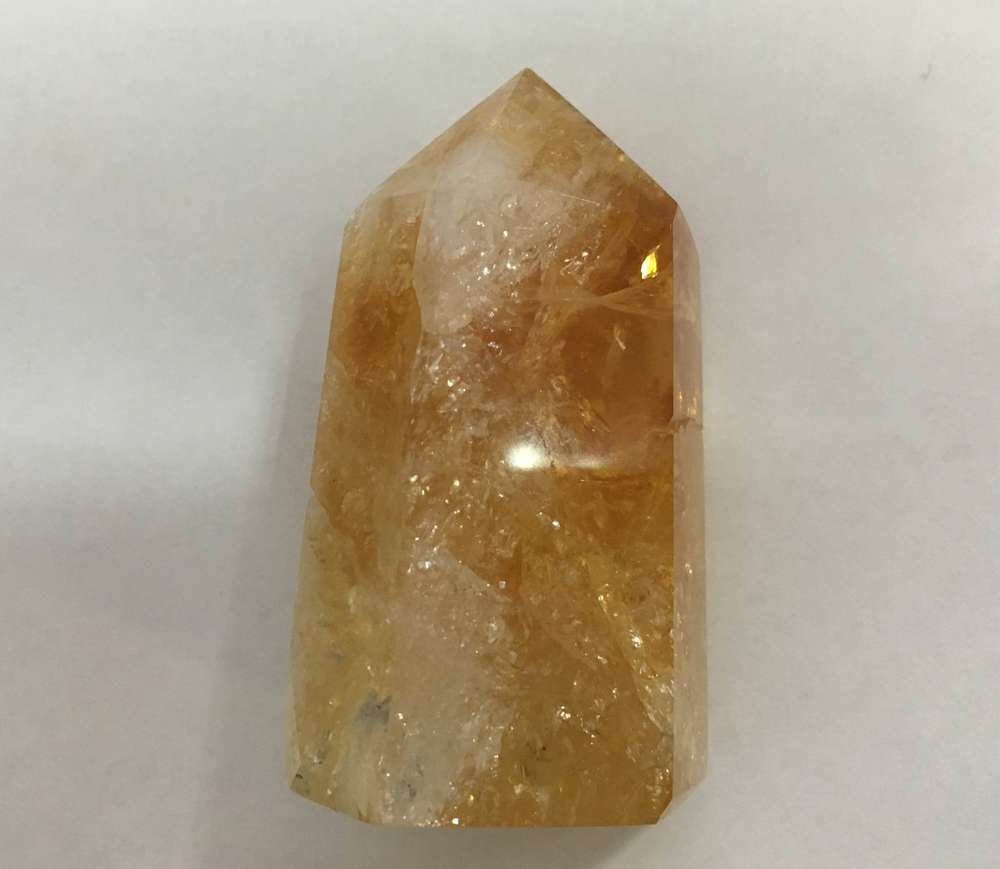 Cuarzo citrino, de color amarillo hasta anaranjado claro, debido también a la presencia de trazas de aluminio.
