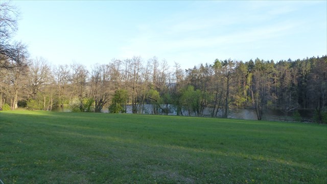 Dalším rybníkem na potoce Mastnice je rybník Dolní Nadýmač. S plochou 1,6 hektarů a retenčním objemem 8 tis. m3 vody nepatří k největším, ale leží v nádherné krajině. My ho objíždíme a prohlížíme si ho přes velkou louku od křížku, kde se říká U Tomášků. Křížek je v zuboženén stavu, deska s nápisem je rozbitá a místo ní je nová plastika. Přesto žádáme návštěvníky, aby zde nic nerozebírali, není to nutné, hint napoví hodně.