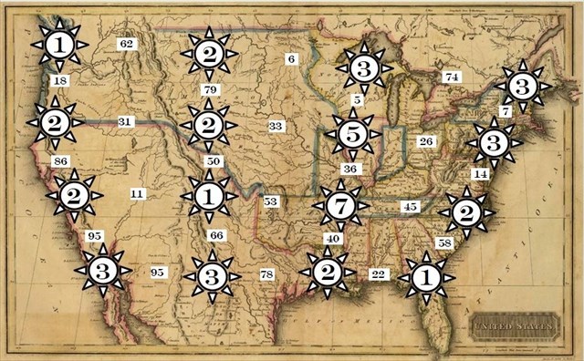 Det visade sig att det var investerare för den framtida järnvägen som dom planerade för USA. På kartan ser man 16 städer utmarkerade som i ett rutmönster, lite förskjutet, men ändock ett rutmönster om 4x4 städer.