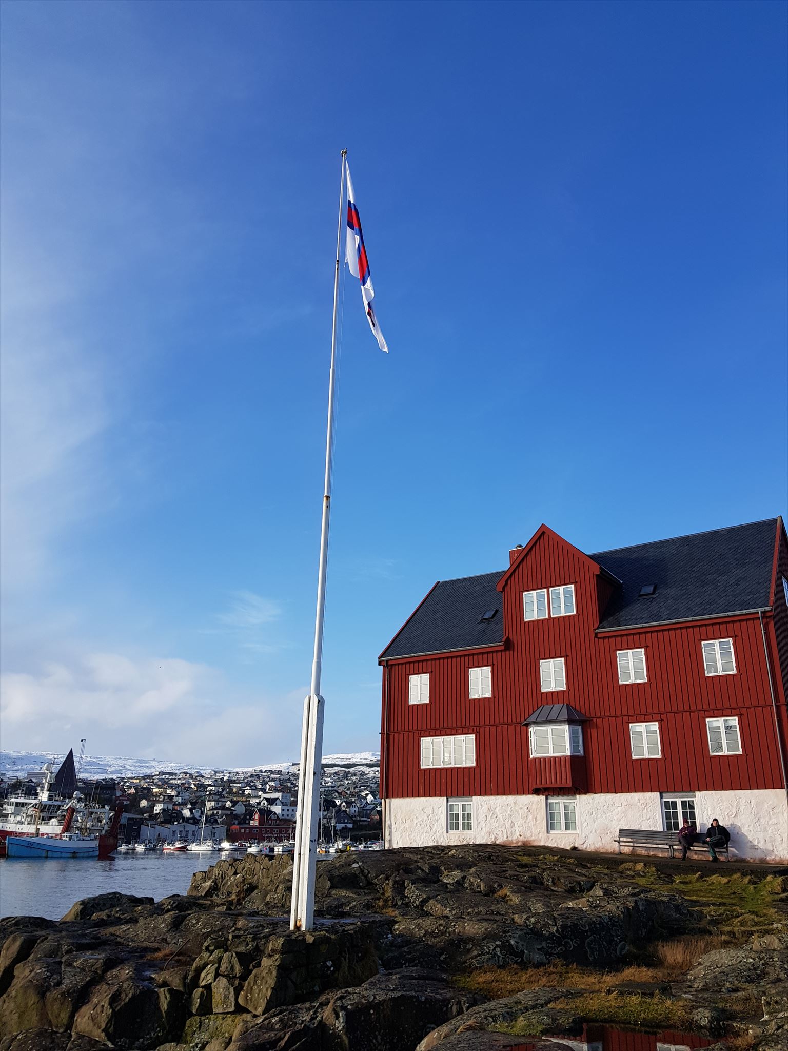 When 5 of 6 of the Gurkburk Crew visited Tórshavn (or "Havn" as we just learned that the locals call it) and the Faroe Islands this stormy February 2020, we noticed that the old parts of the harbour was a white spot regarding the caches. We summoned up what we had, and placed a PET-tube close to the Flag pole, behind some small rocks. Warm welcome to log. For more information take a look at the spoiler picture, and for the log please bring your own pen.
