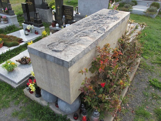 Druhé zastavení je na vítkovském hřbitově. Zde naleznete hrob Jana Zajíce, který vytvořil sochař Olbram Zoubek. Naproti hrobu Jana Zajíce je hrob rodiny Královy. Jsou zde pohřbeni Tomáš (19CD-2001), Adéla (19EF-2017), Pepík (19GH-1959).