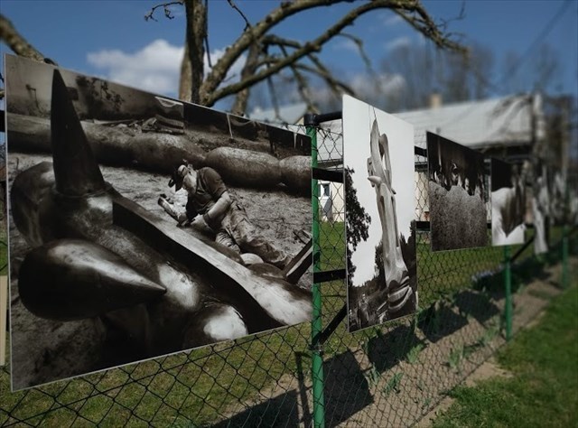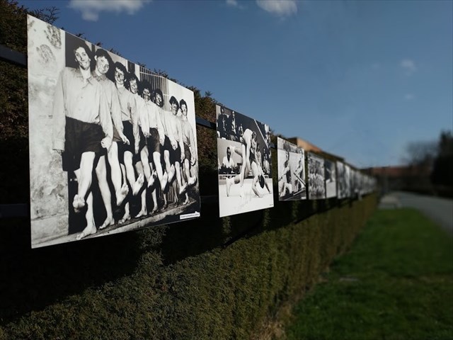 Následoval nápad umístit fotografie na přilehlou kamennou zeď, jak zevnitř, tak do ulice. Ale proč se limitovat jen vlastní zdí?