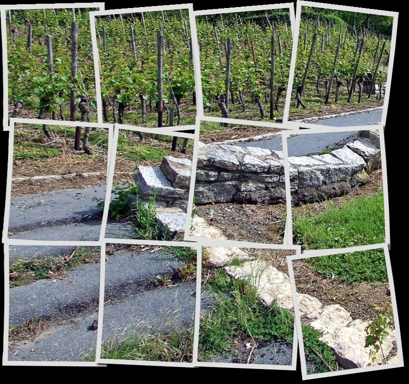 Hier an den gemauerten Einfriedungen kannst du sehr schön die Bewegungen des Hanges erkennen, denn diese Wellen waren nicht immer so ausgeprägt, es waren ursprünglich gerade Linien entlang der Gemäuer.