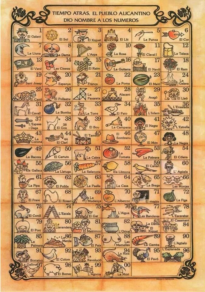 Una costumbre propia y única de esta terreta, aunque el número 15 ("el raïm") también se conoce en otras partes de España como "la niña bonita" y el 22 ("la poma") como "los dos patitos". Recuperemos nuestras buenas costumbres, y para aquellos que no las conozcáis, comprobad cuán curiosos y peculiares somos.