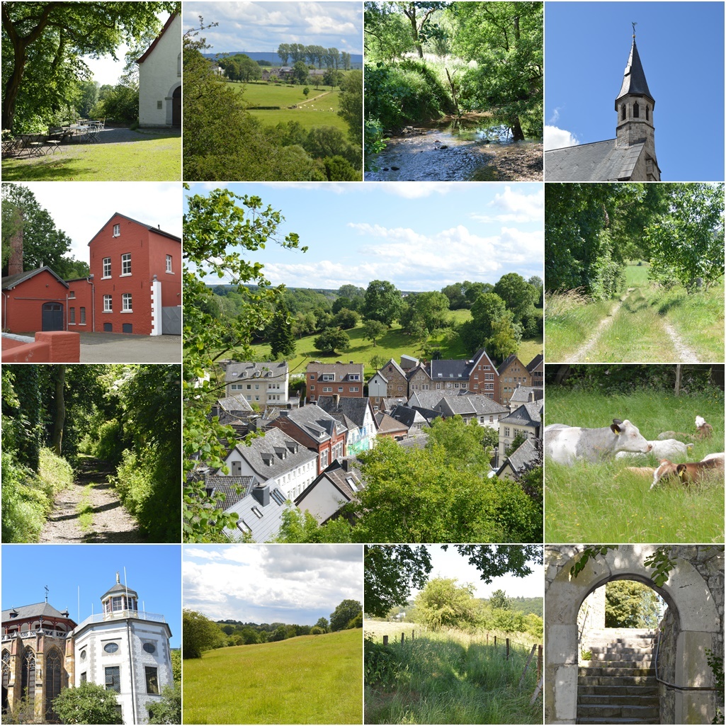 Über enge, im Sommer stark zugewachsene, Pfade geht es weiter bis zum Steinbruch Hoven und dann in Richtung Dorff. Nach einem Abstecher zur sehenswerten Dorffer Linde geht es weiter in Richtung Kornelimünster. Vorbei an Wiesen und Weiden geht es nach dem Besuch des Varnenum durch ein kleines, uriges Wäldchen zur Bergkirche St. Stephanus. Von hier oben hat man eine gute Sicht auf die Altstadt von Knolle. Über eine alte Treppe geht es runter zum Marktplatz und über die Inde weiter in das Naturschutzgebiet Klauserwäldchen/Frankenwäldchen.