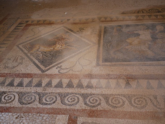 Délos recèle de véritables trésors en termes de mosaïque, magnifiques malgré le temps et l’exposition aux intempéries.