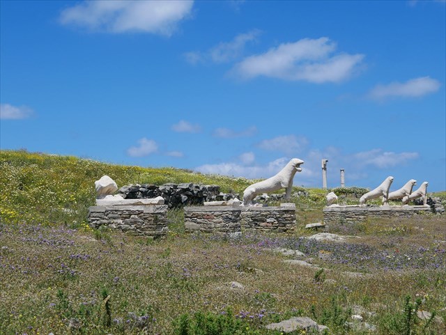 It was for the Ancients the center of the Cyclades archipelago because it was the birthplace of the twins Apollo and Artemis. This sacred place was erected as a sanctuary.