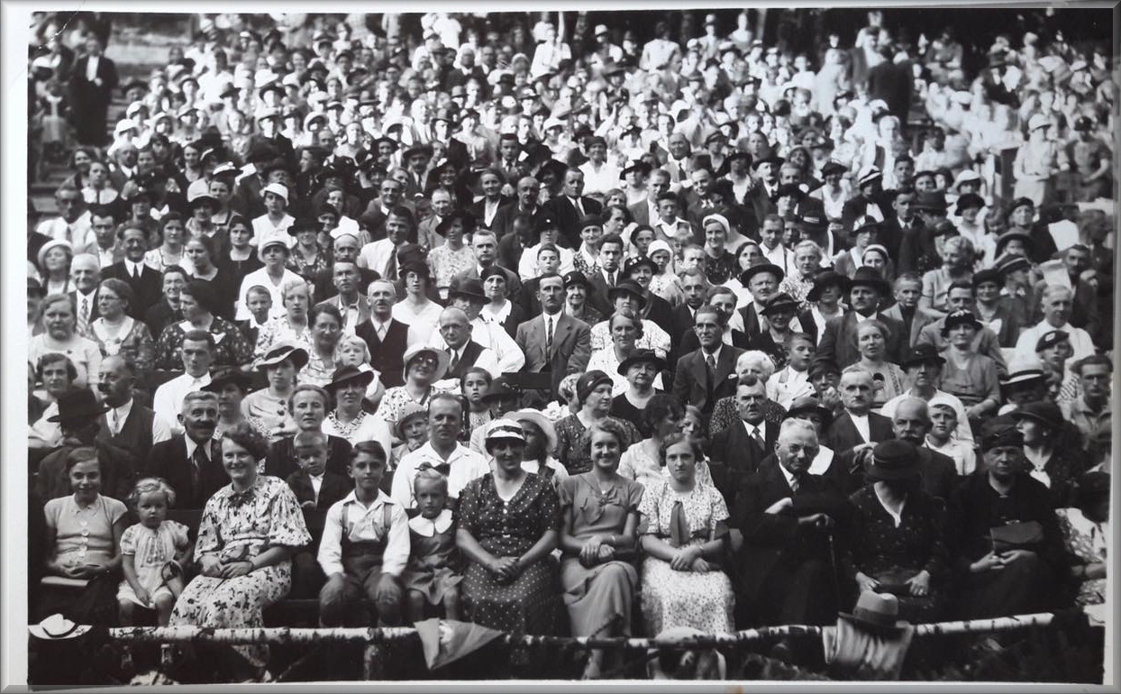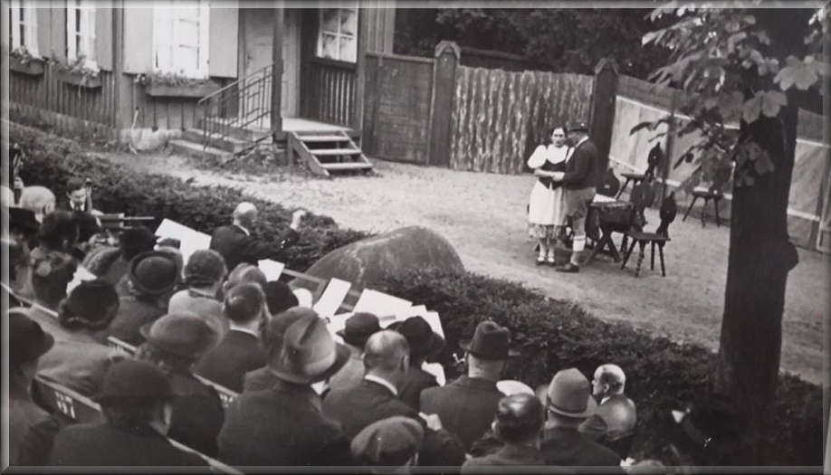 Na politickém horizontu se už stahovaly temné mraky, když se tam 12. července 1914 konala slavnostní premiéra. Hrála se lidová hra v režii Augusta Schichta "Goldbauer" (Zlatý sedlák), která byla tisícihlavým publikem přijata velice příznivě. O čtrnáct dní později rozpoutal atentát v Sarajevu první světovou válku, mladí muži museli narukovat, divadelní skupina se rozpadla.