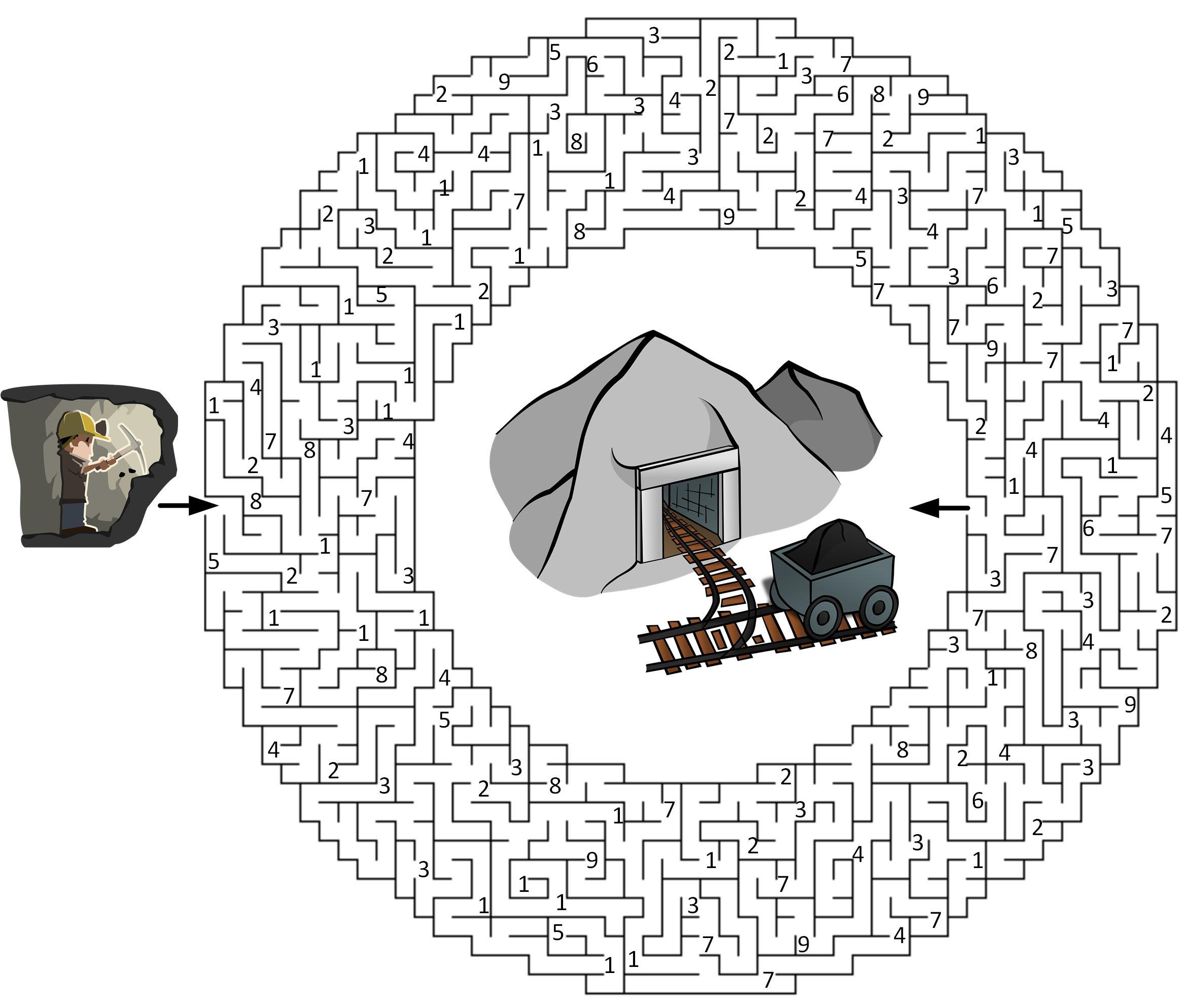 Der fleißige Bergmann hat vor lauter Arbeit den Weg zurück zum Ausgang vergessen. Hilf ihm, den kürzesten und direkten Weg zu finden, und als Dank zeigt er dir den Weg zur Dose.