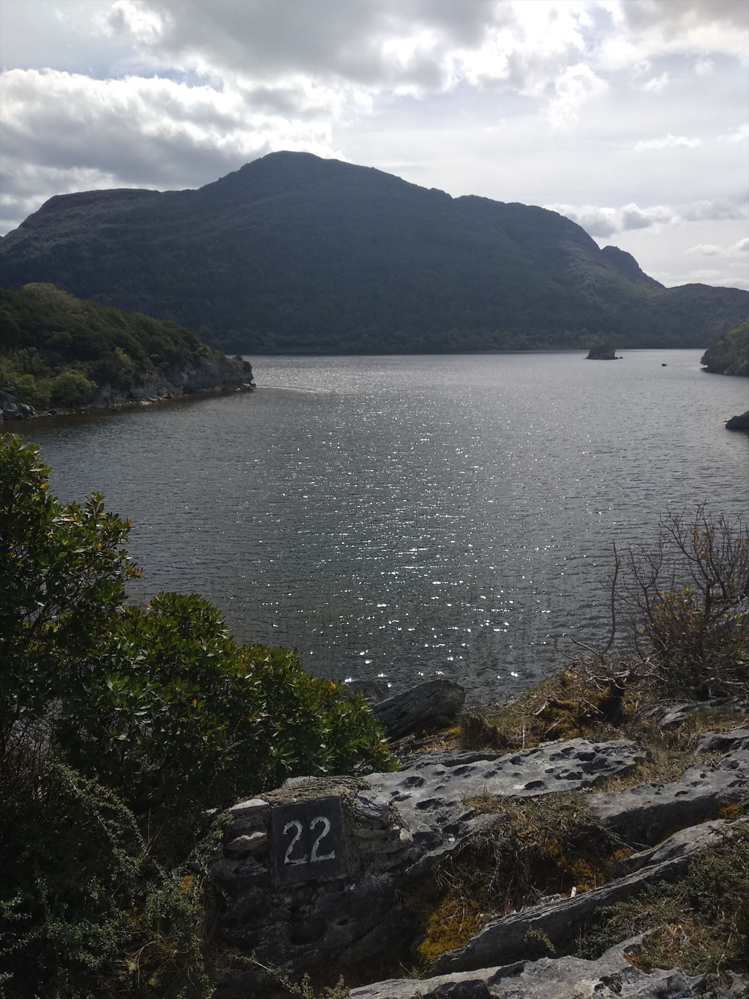 In the vicinity of the the cache location are direct views of Torc Mountain across the lake. The little island is known as Devil's Island. Apparently it was scooped up from the top of Mangerton and hurled at a local chieftain by the Devil himself, leaving behind the Devil's Punchbowl.