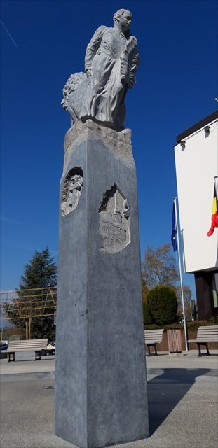 In 2018 the new city hall square in Saint Vith has been opened with a public festival. Many discussions were walked at the head of the reorganization of the place, however, now it's ready. Heart of the square is a 3,5 metric tons sculpture from Belgian granite which was sketched by the Tübingen artist Ralf Ehmann. The piece of art shows the saint Vitus and the lion from the town coat of arms. The pillar has motives which refer to four subjects which state a lot about the town Saint Vith and their history: Fruits, hat and cattle as symbols for the market events, the destroyed Büchelturm in recollection of the bombardment of the town in the end of 1944, the town built up again and a scenery with traditional figures of the Saint Vither carnival. Who would like to get to know more about the piece of art and the artist, Other explanations to that are delivered on an info board beside the place.