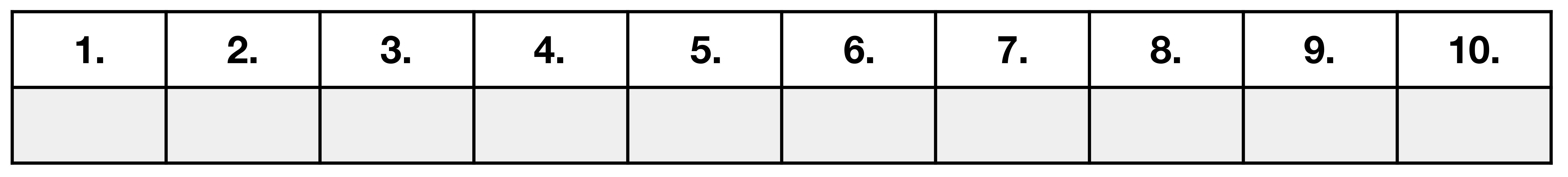5. Die Zahlen in den Fächern 1, 6, 7, 9 und 10 sind ungerade.