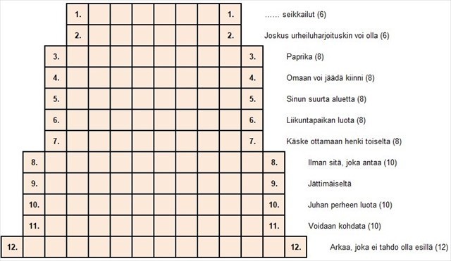 Kaskaat ovat nivelkärsäisten lahkoon kuuluvia hyönteisiä. Tässä mysteerissä ei kuitenkaan paneuduta kaskaiden elämään tämän enempää. Sen sijaan tutustumme suomen kielen hauskuuksiin. Tällä kertaa etsimme sanoja, jotka muodostuvat kahdesta samanlaisesta merkkijonosta. Esimerkiksi sana KASKAS muodostuu kahdesta KAS -merkkijonosta. Haetut sanat voivat olla perusmuodossa, mutta myös taivutettuina. Merkkijonojen, joista sanat muodostuvat ei itsessään tarvitse tarkoittaa mitään. Monissa tapauksissa nekin kuitenkin ovat suomen kielen sanoja - perus- tai taivutusmuodossa. Suurin osa vihjeistä on laadittu sellaisiksi, ettei niissä suoraan anneta oikeaa taivutusmuotoa. Syötä löytämäsi sanat checkeriin peräkkäin numerojärjestyksessä pilkuilla erotettuna ilman välilyöntejä saadaksesi kätkön koordinaatit.