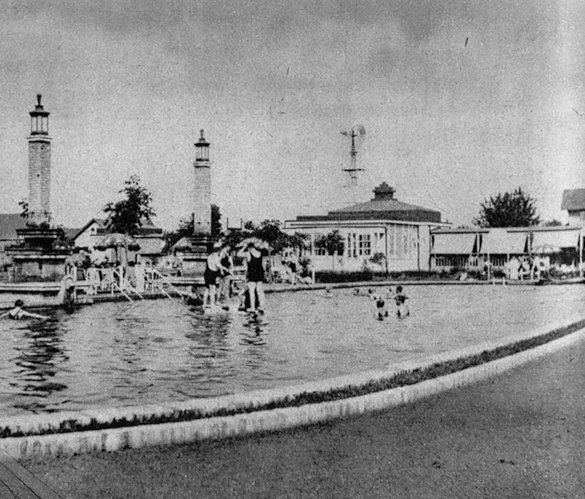 V centru lázní byl rozsáhlý park s vodotrysky, skluzavkou, vodním kolem, skákacími můstky a lehátky. V hlavní stavbě byl zrcadlový sál s pódiem, francouzská jídelna, dvě restaurace, kuželník, moderně vybavená kuchyň a byt správce.