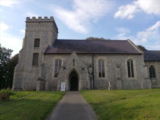 The parish church of St Mary consists of a chancel with north vestry, nave with south porch, and west tower. The nave dates from the 14th century, with the tower added in the 15th century. The external stone dressings were mainly replaced by grey brick in the 1820s.